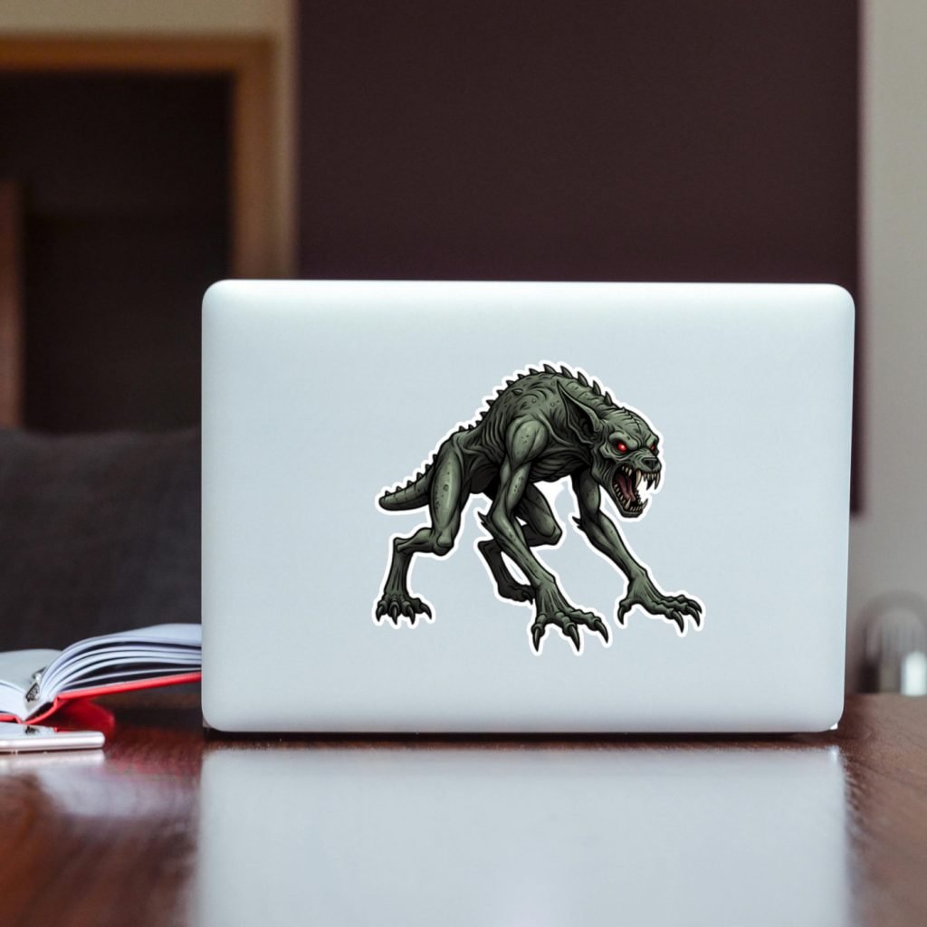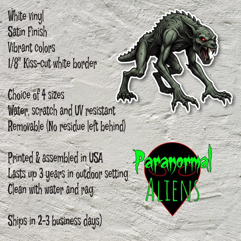 This Chupacabra Sticker features vibrant colors, a satin finish, and kiss-cut edges with white borders. Waterproof and durable, it’s a bold cryptid gift for horror fans and tech accessories.