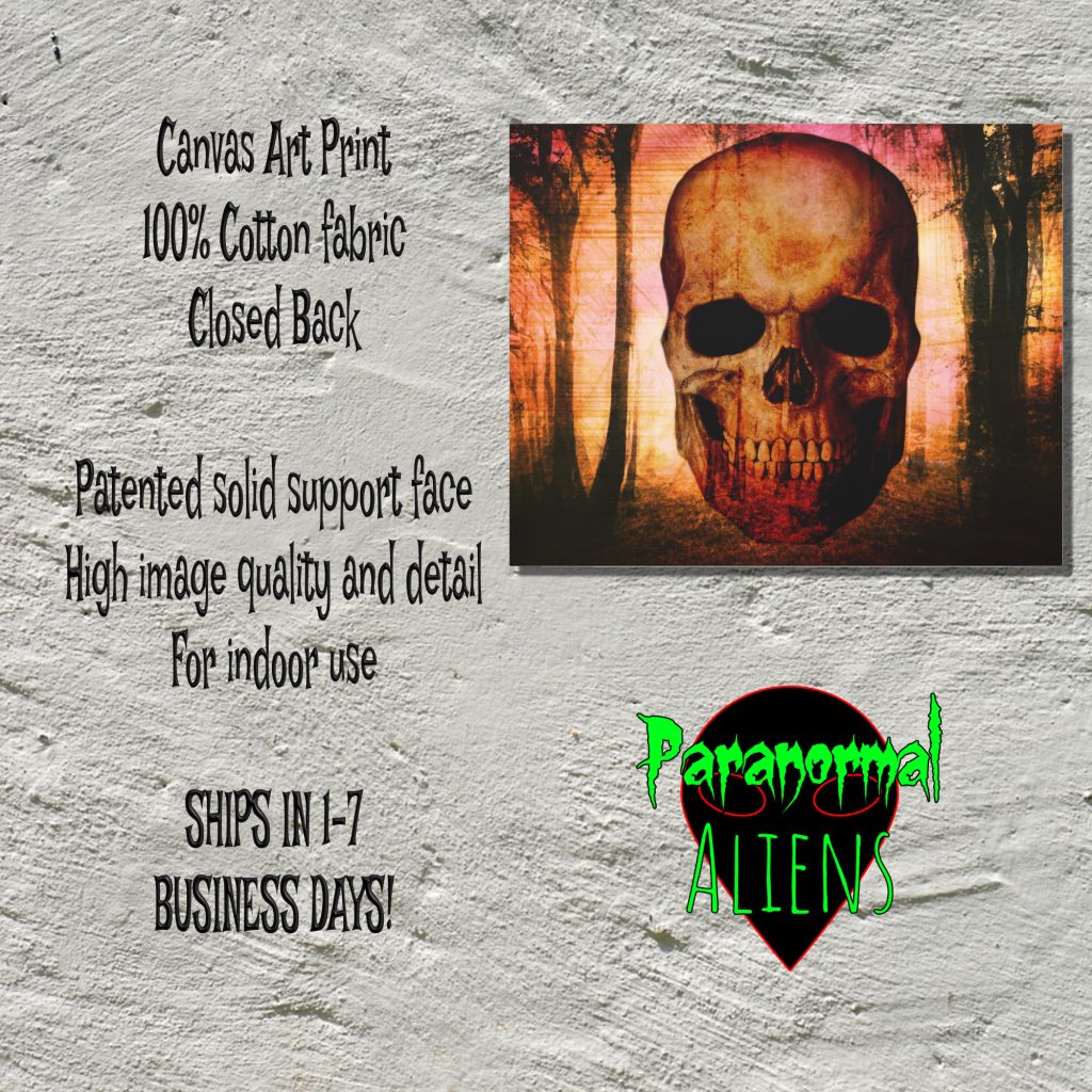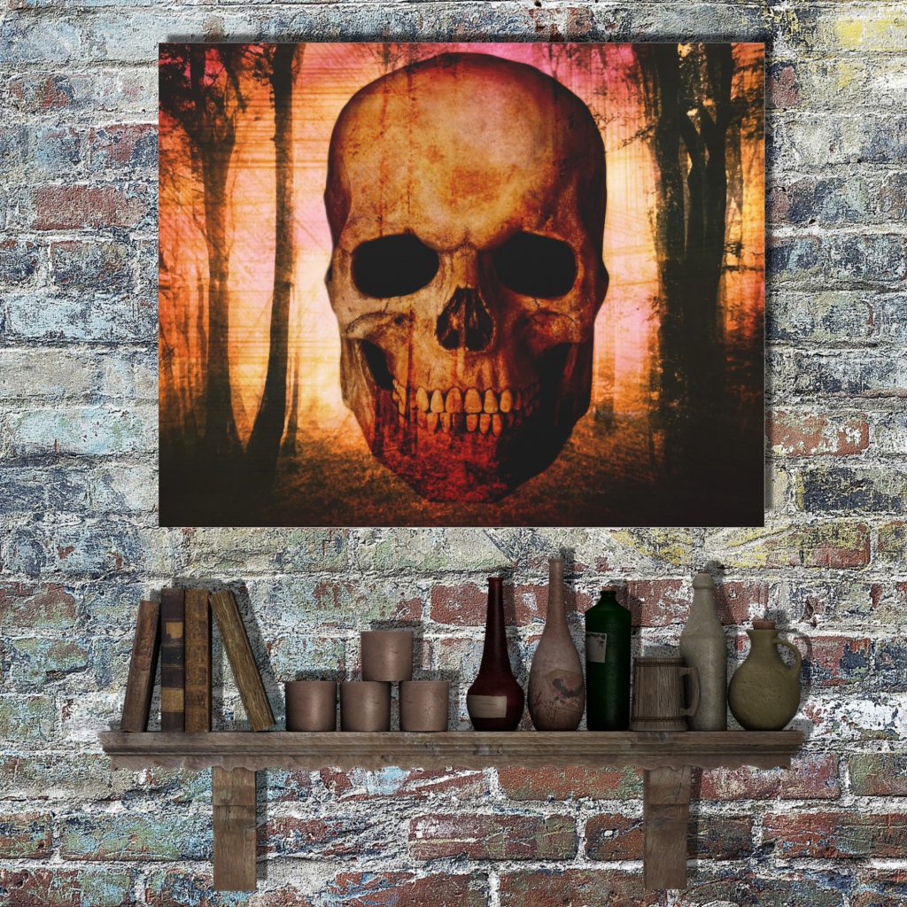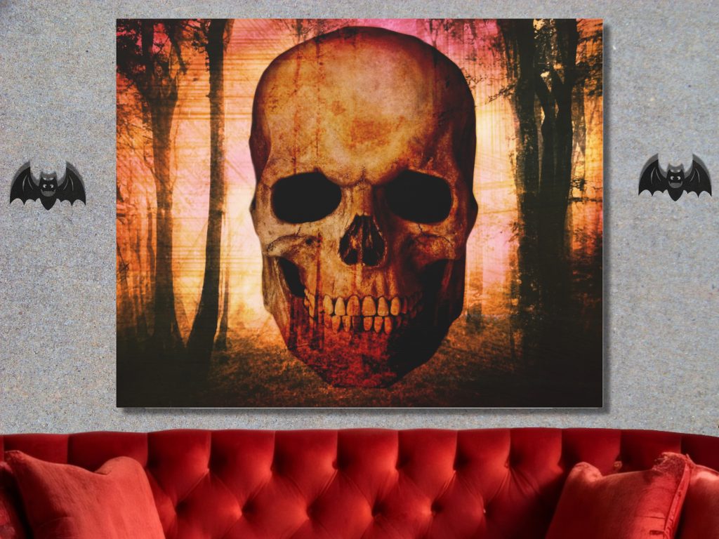 Transform your space with this haunting Creepy Human Skull Canvas Art, where a large human skull is depicted at the center against a chilling red-tinted forest. This striking piece of horror wall art is perfect for those who appreciate the eerie and macabre, making it an ideal addition to any collection of Goth wall art. This captivating canvas print showcases a large skull surrounded by a spooky forest, creating a dramatic atmosphere that will elevate your home décor. Perfect for Halloween or year-round display, this art print is designed to impress and intrigue. Elevate your living space with this Creepy Human Skull Canvas Art. Whether it’s a striking addition to your own home or a memorable gift for him, this gothic masterpiece is crafted to bring intrigue and style to any environment. Don’t miss out on adding this captivating piece to your collection!