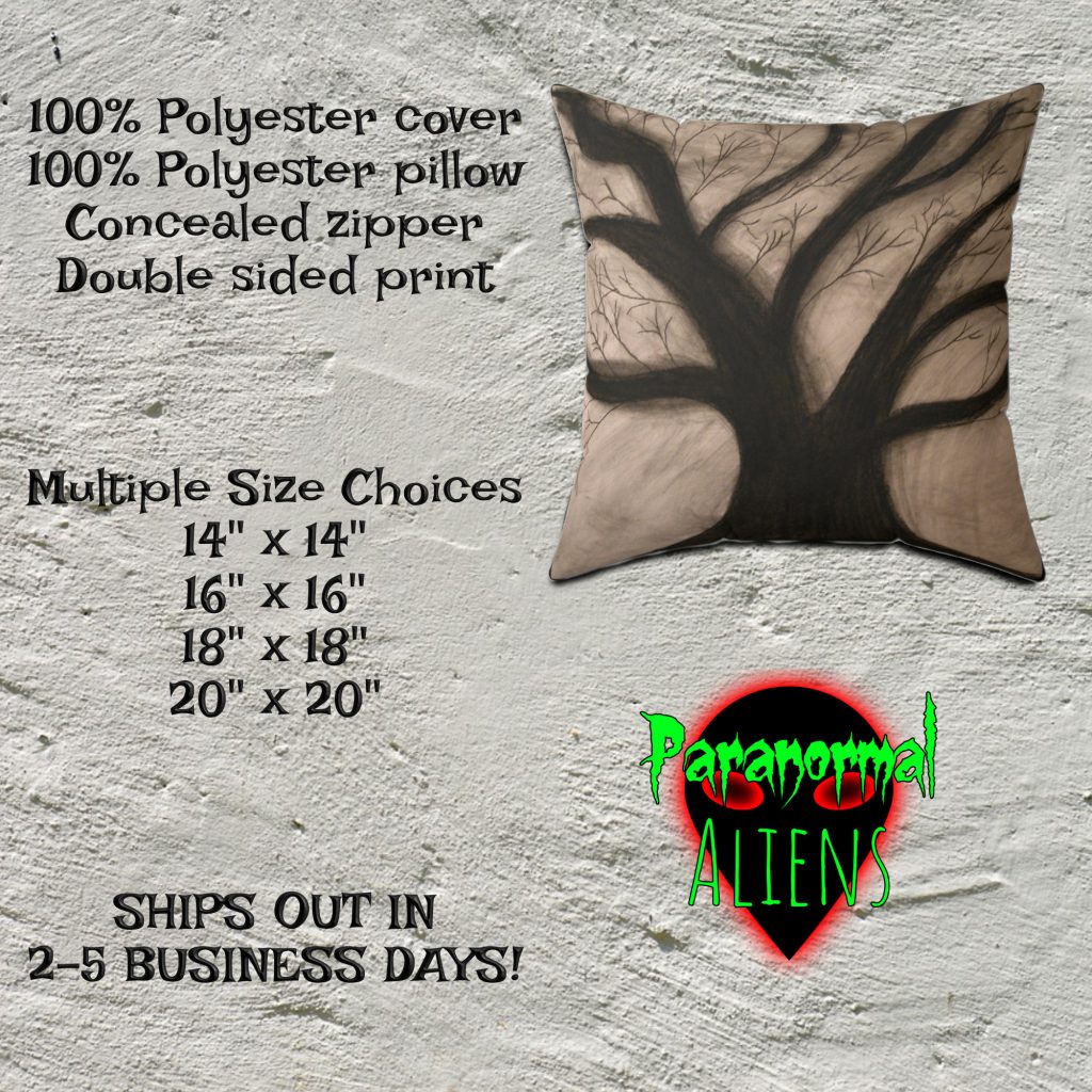 Transform your living space into a darkly enchanting realm with our captivating Goth Throw Pillow. Featuring an intricately hand-drawn gothic tree printed design, this unique throw pillow is a perfect blend of elegance and mystery. Crafted with meticulous attention to detail, it adds a touch of macabre charm to any room. This bewitching pillow makes an ideal gift for him, infusing his space with an aura of masculine allure. Whether as a Halloween decoration or a year-round goth decor accent, its hauntingly beautiful presence sets the stage for a spine-tingling atmosphere. Crafted with high-quality materials, this spooky pillow offers both comfort and style, making it a must-have for any discerning individual seeking to embrace their dark side. Elevate your interior decor with our Goth Throw Pillow and let the shadows come alive.