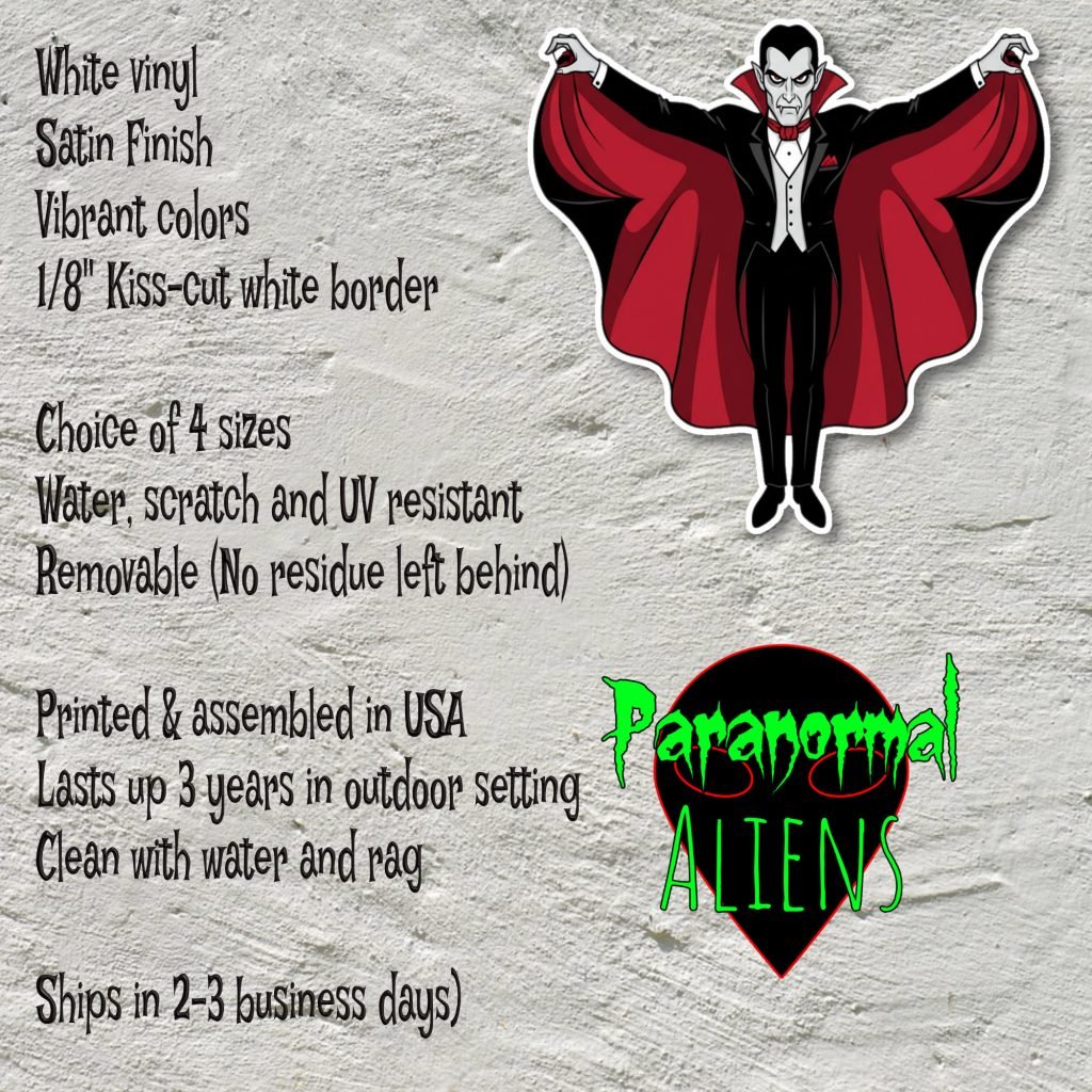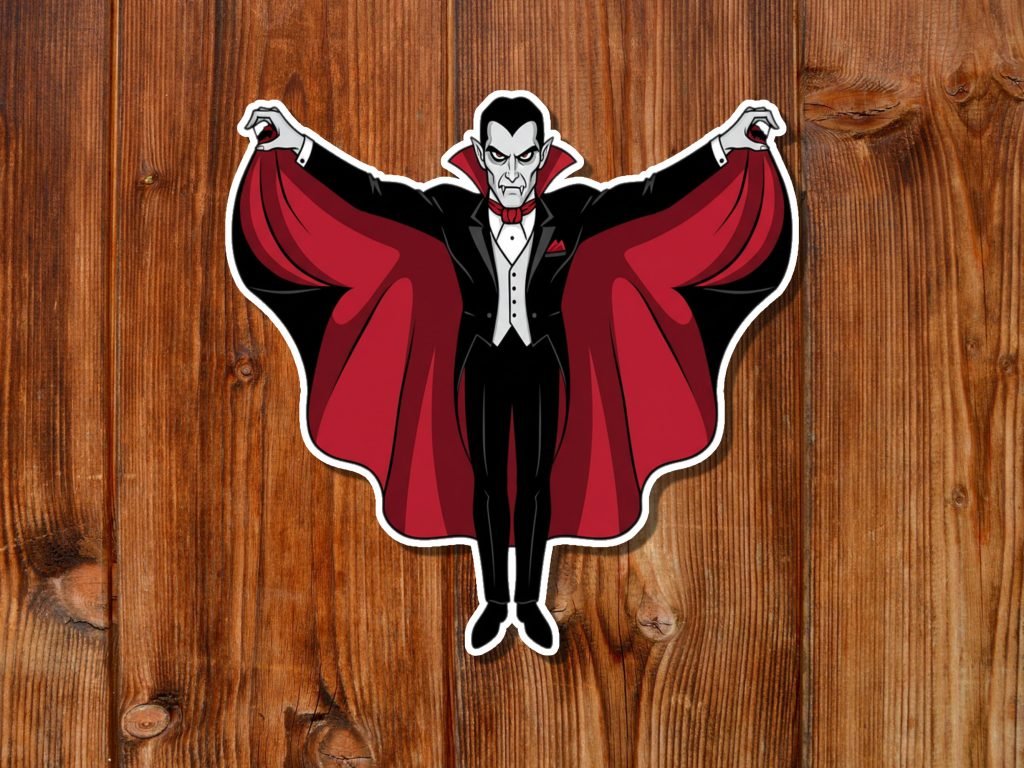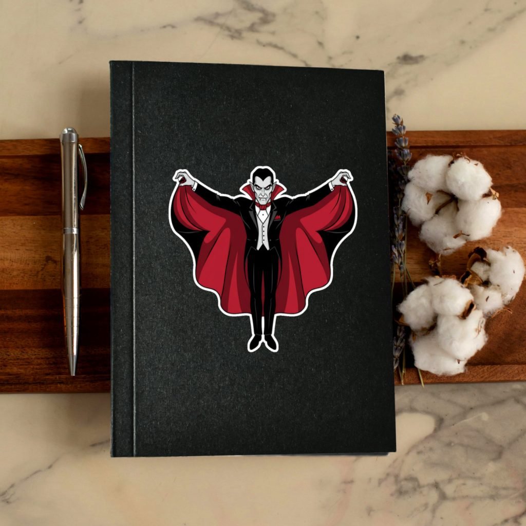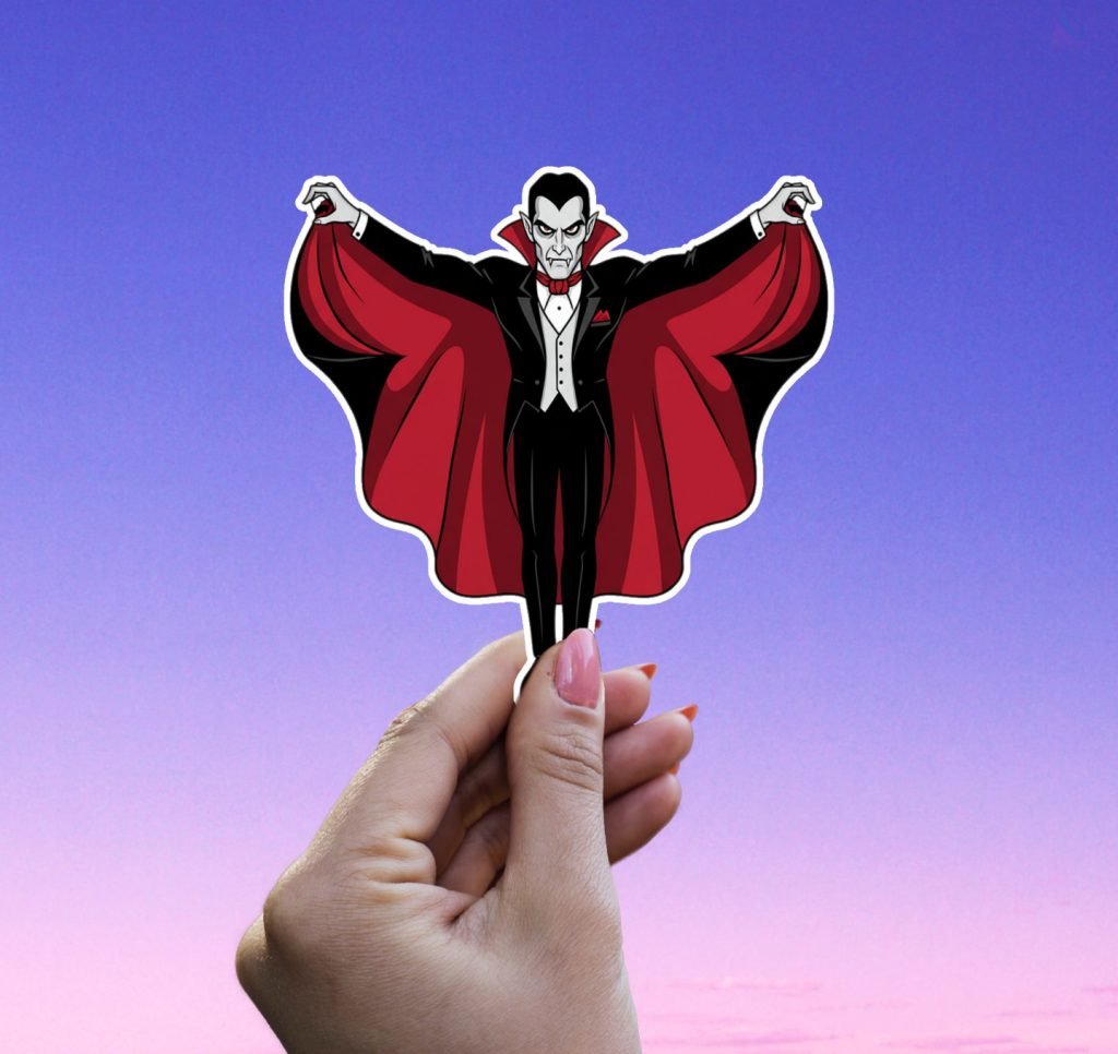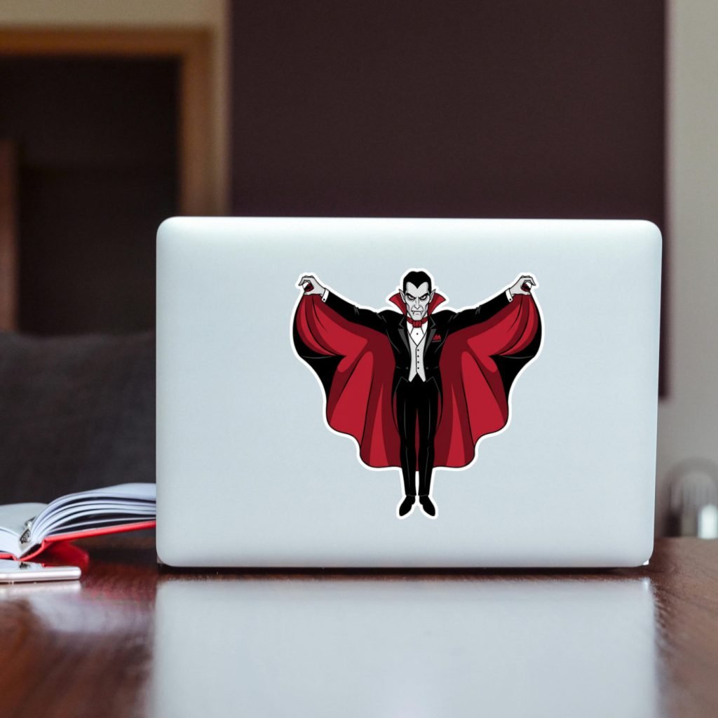 This Dracula Sticker features vibrant colors, a satin finish, and kiss-cut edges with white borders. Waterproof and durable, it’s a spooky gift for horror fans and Halloween tech decor.