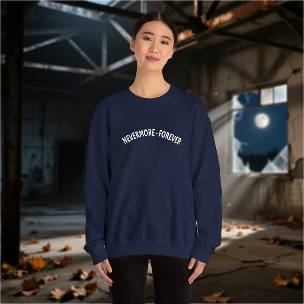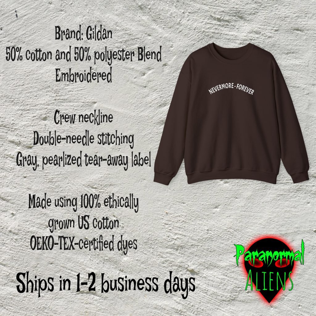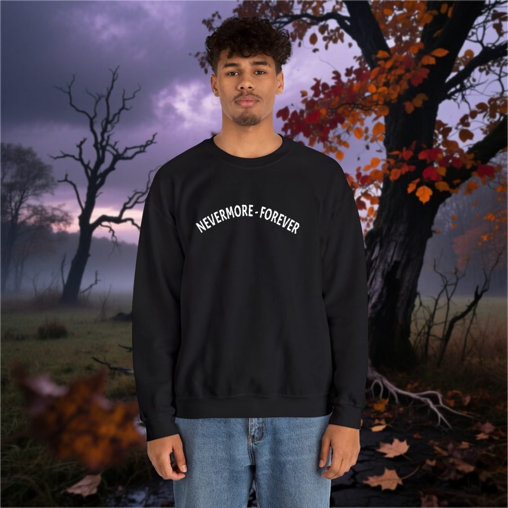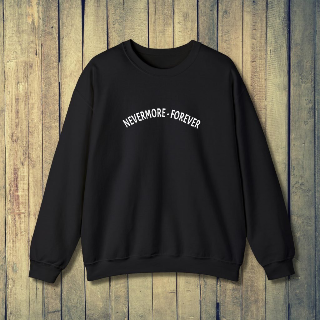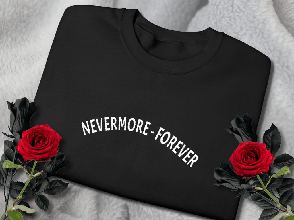 This Embroidered Quote The Raven Sweatshirt features the haunting line “Nevermore — forevermore.” stitched on a cozy Gildan 18000 pullover. A poetic gift for horror lovers, gothic stylists, and Edgar Allan Poe fans who embrace literary darkness and moody fashion.