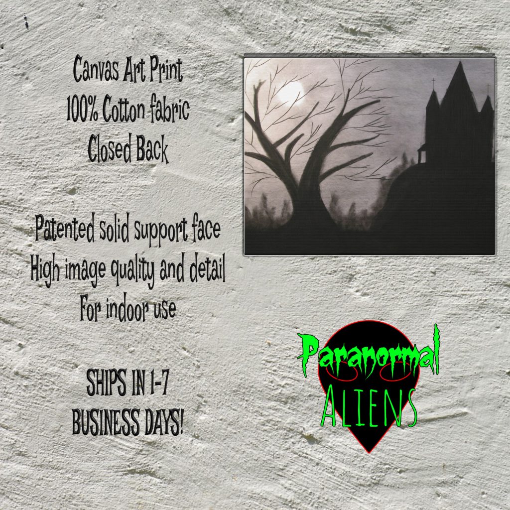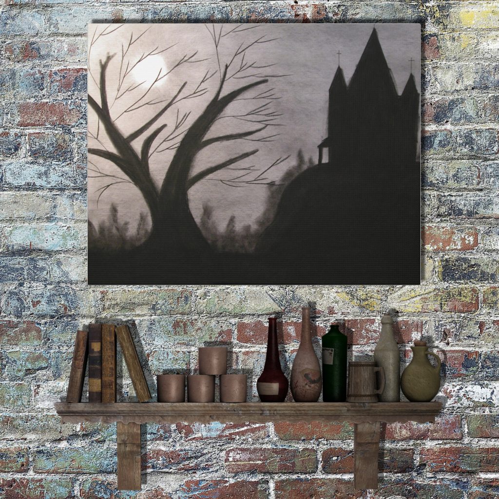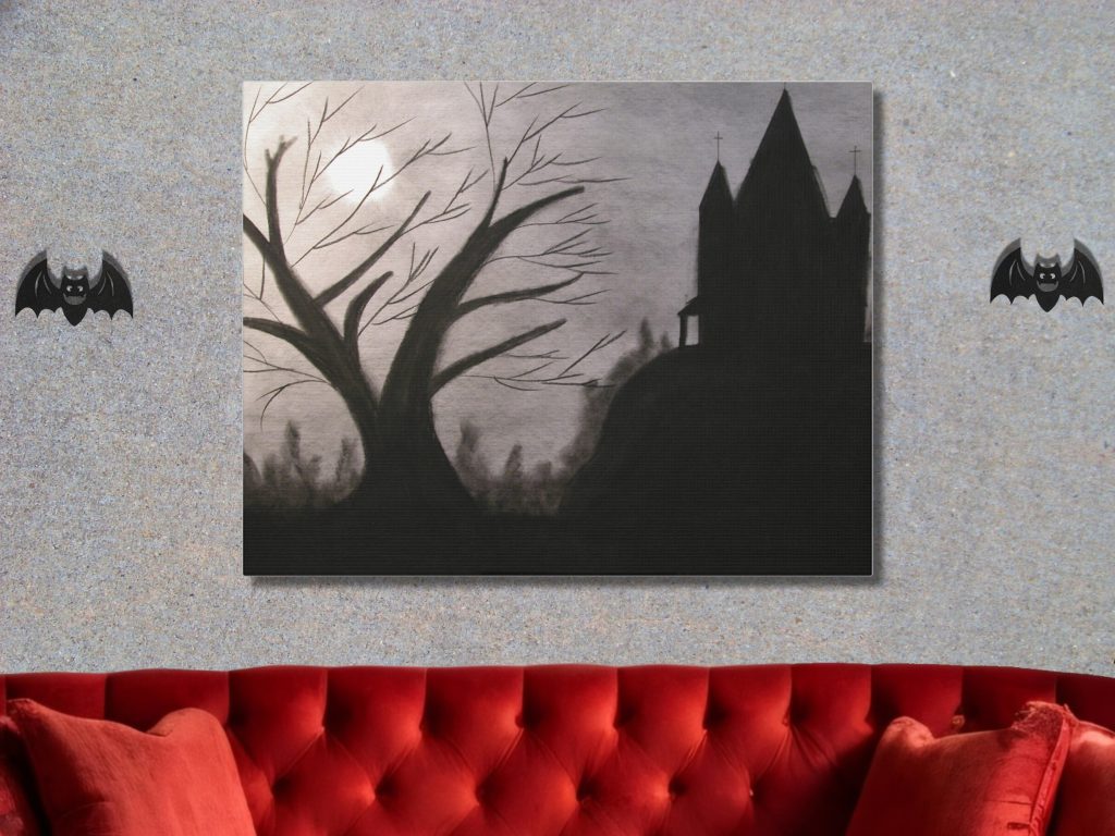 Unleash the haunting allure of darkness with this captivating gothic wall art canvas print. This black and white print features a mesmerizing charcoal drawing, depicting a creepy tree set against a gothic church backdrop. Perfect gift for horror lovers and those enchanted by the macabre, this dark fantasy art print evokes a chilling atmosphere that will send shivers down your spine. The meticulous details and eerie ambiance make it an ideal choice for both home decor and as a horror gift. Embrace the enigmatic world of gothic fantasy art with this creepy wall art, transporting you to a realm of shadows and mystery. Let this dark art print ignite your imagination and infuse your space with a captivating dose of darkness. Experience the thrill of the unknown and satisfy your craving for the macabre with this exceptional piece of Gothic Wall Art Canvas Print.