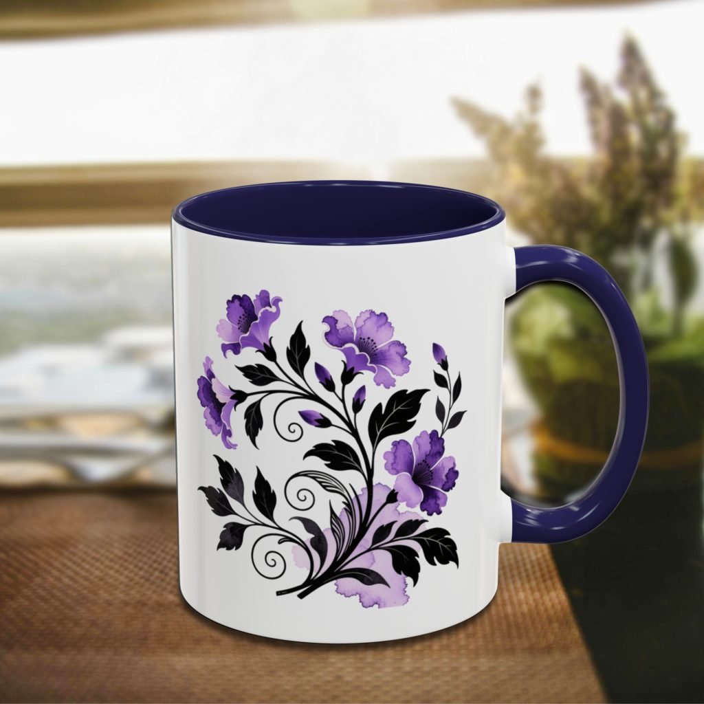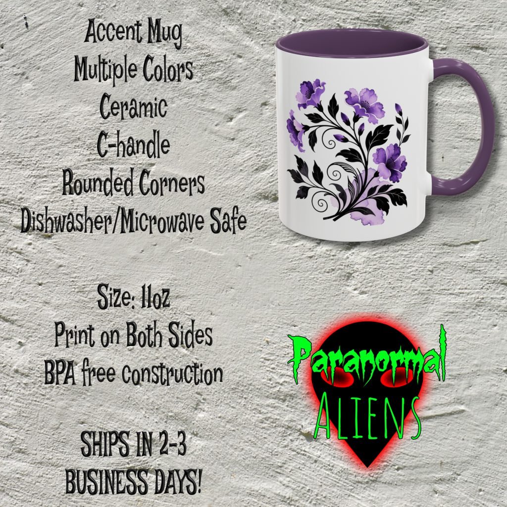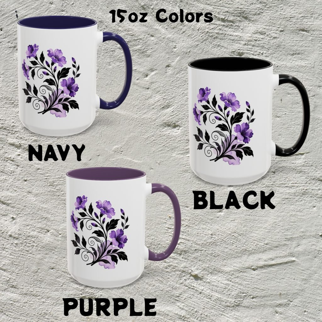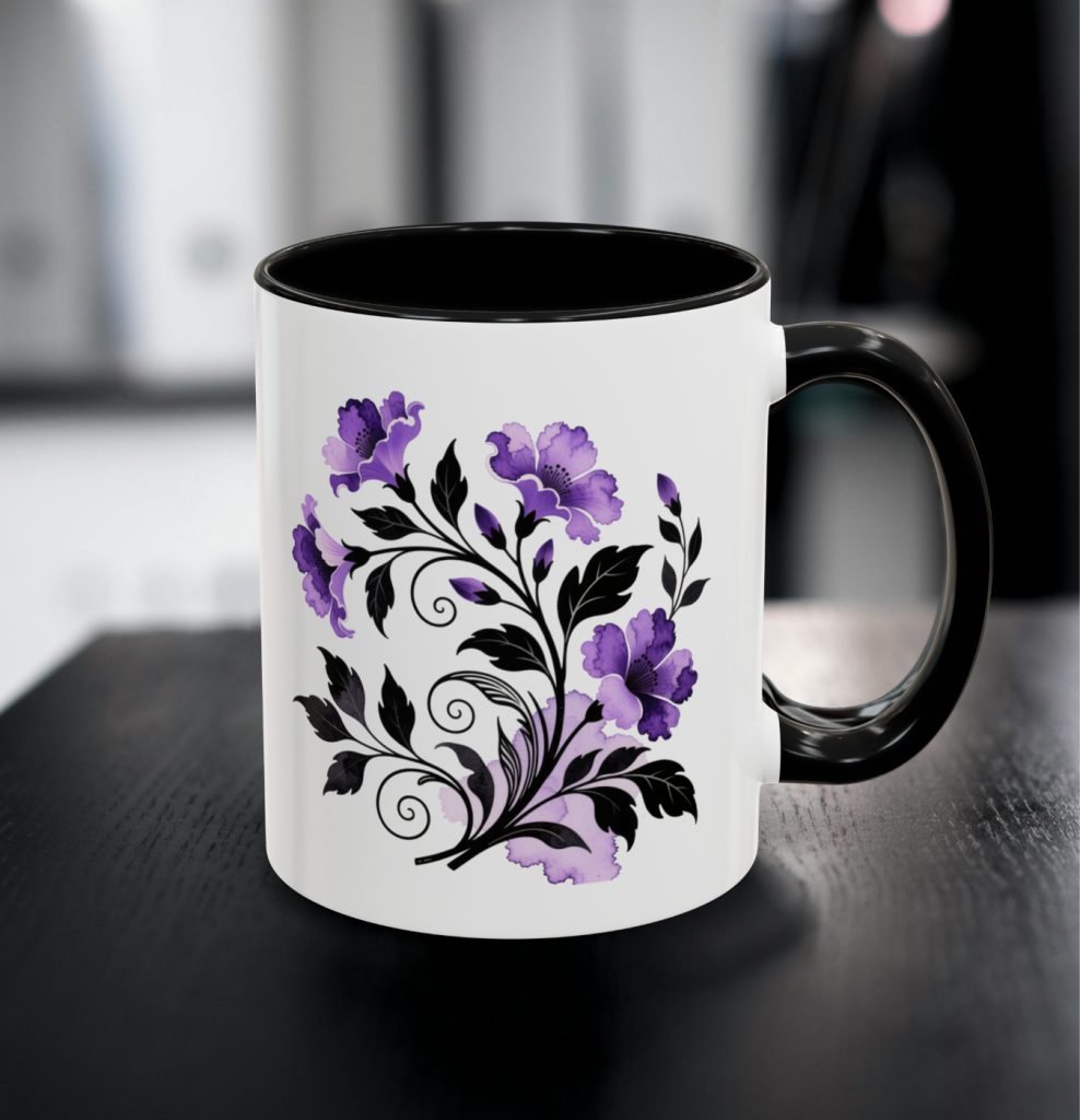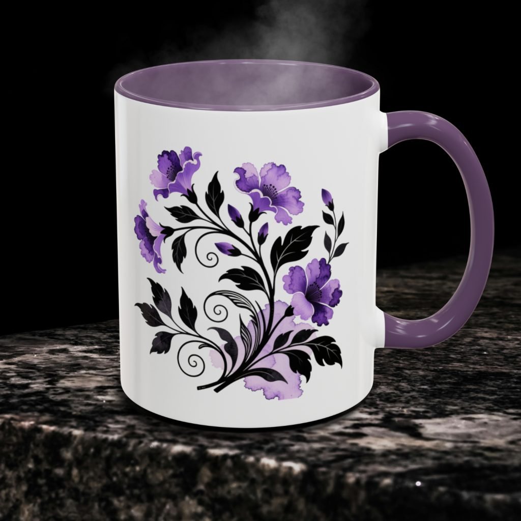 This ceramic Gothic Flowers Mug showcases gothic purple and black floral art in a creepy style for horror lovers and goth gifting. Comes as 11oz or 15oz. Microwave and dishwasher safe for everyday use.