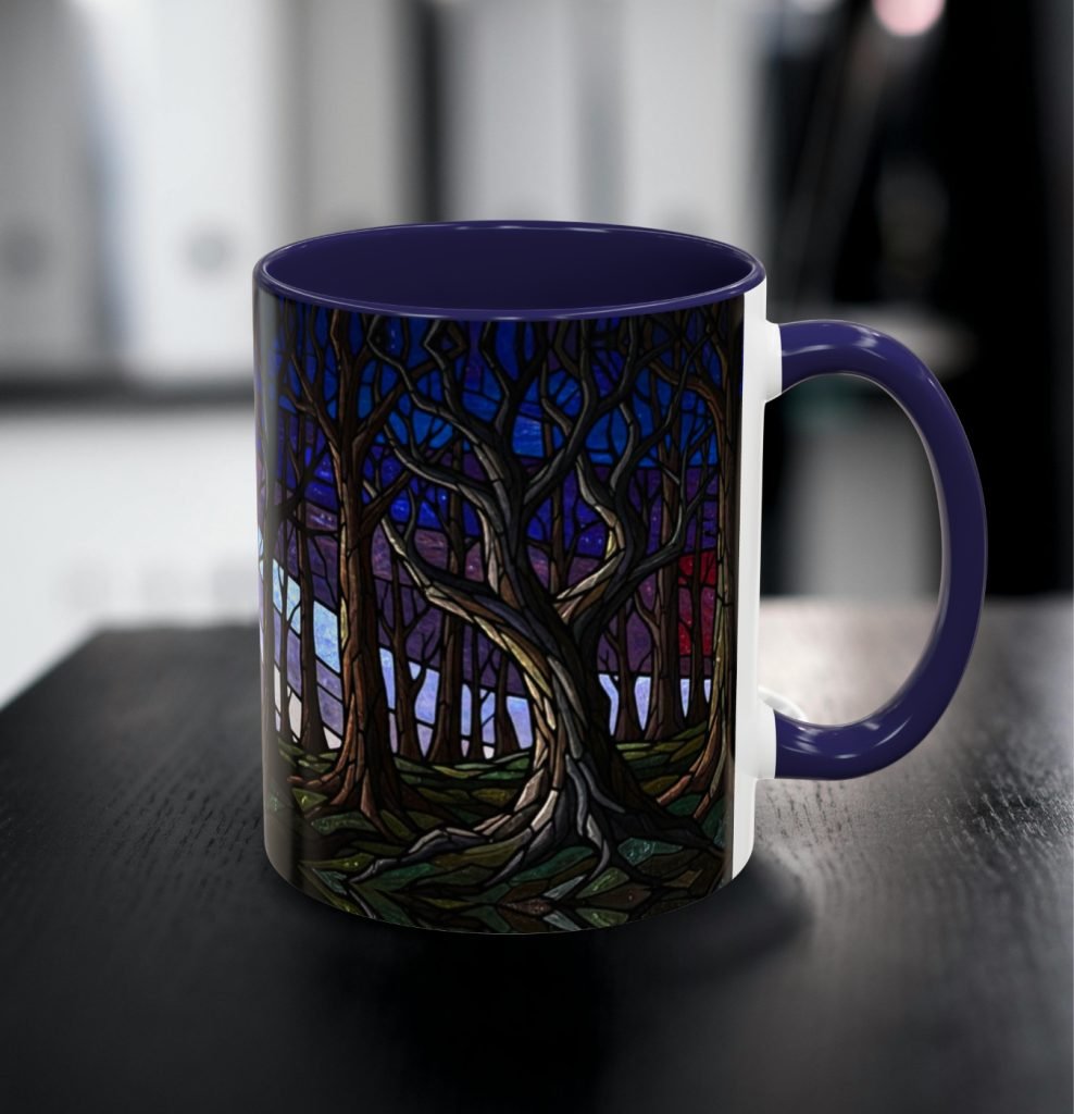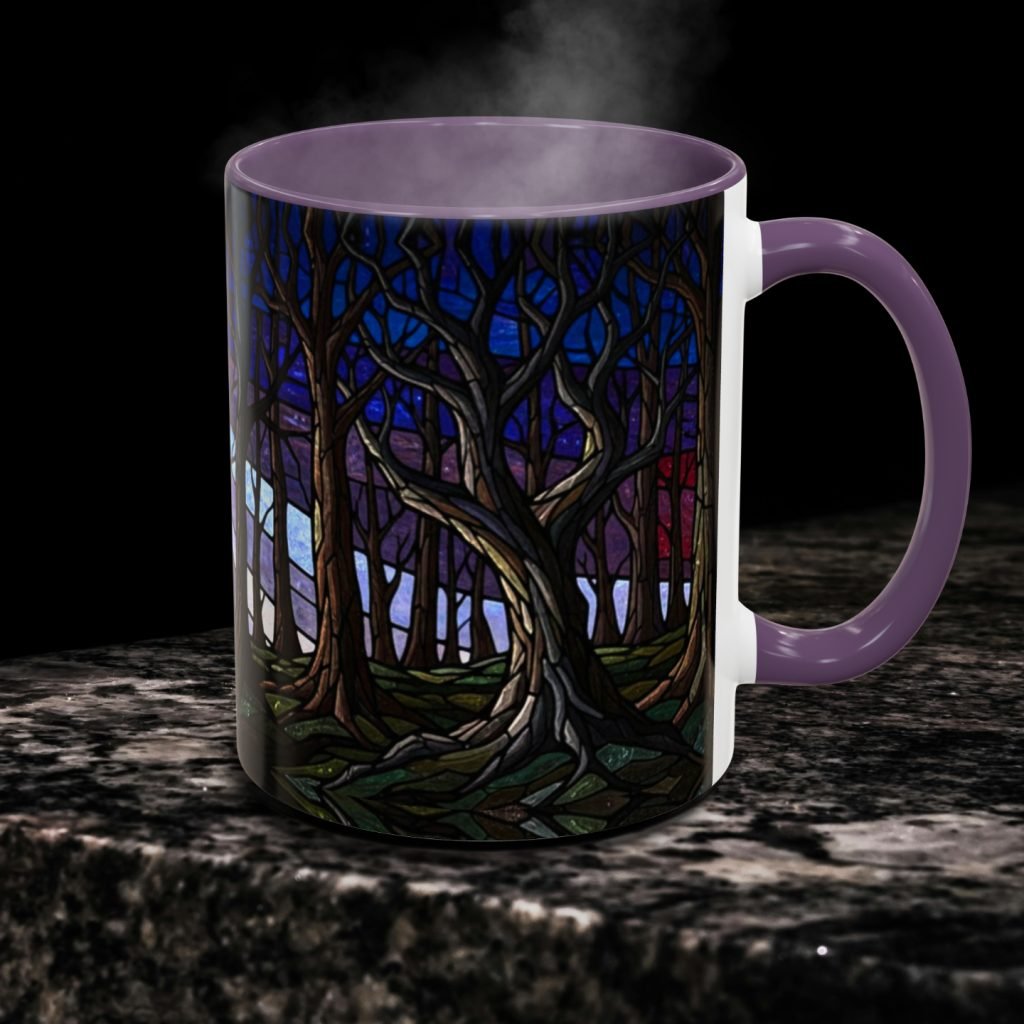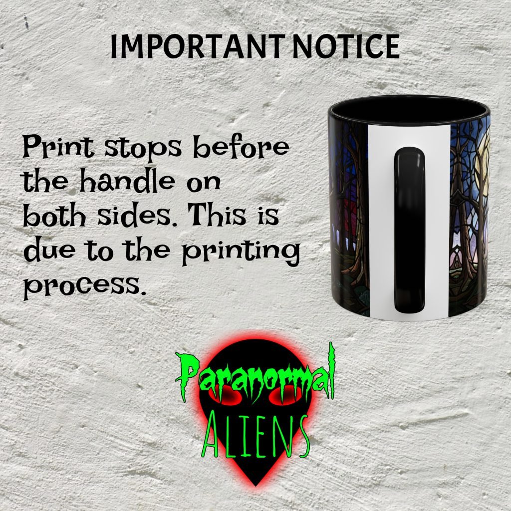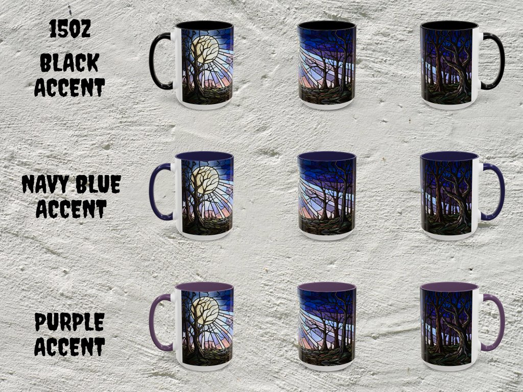 This 11 oz or 15 oz ceramic Stained Glass Coffee Cup features stained glass-style gothic moon artwork—ideal for goth gifting and celestial drinkware lovers. Microwave and dishwasher safe for daily use.