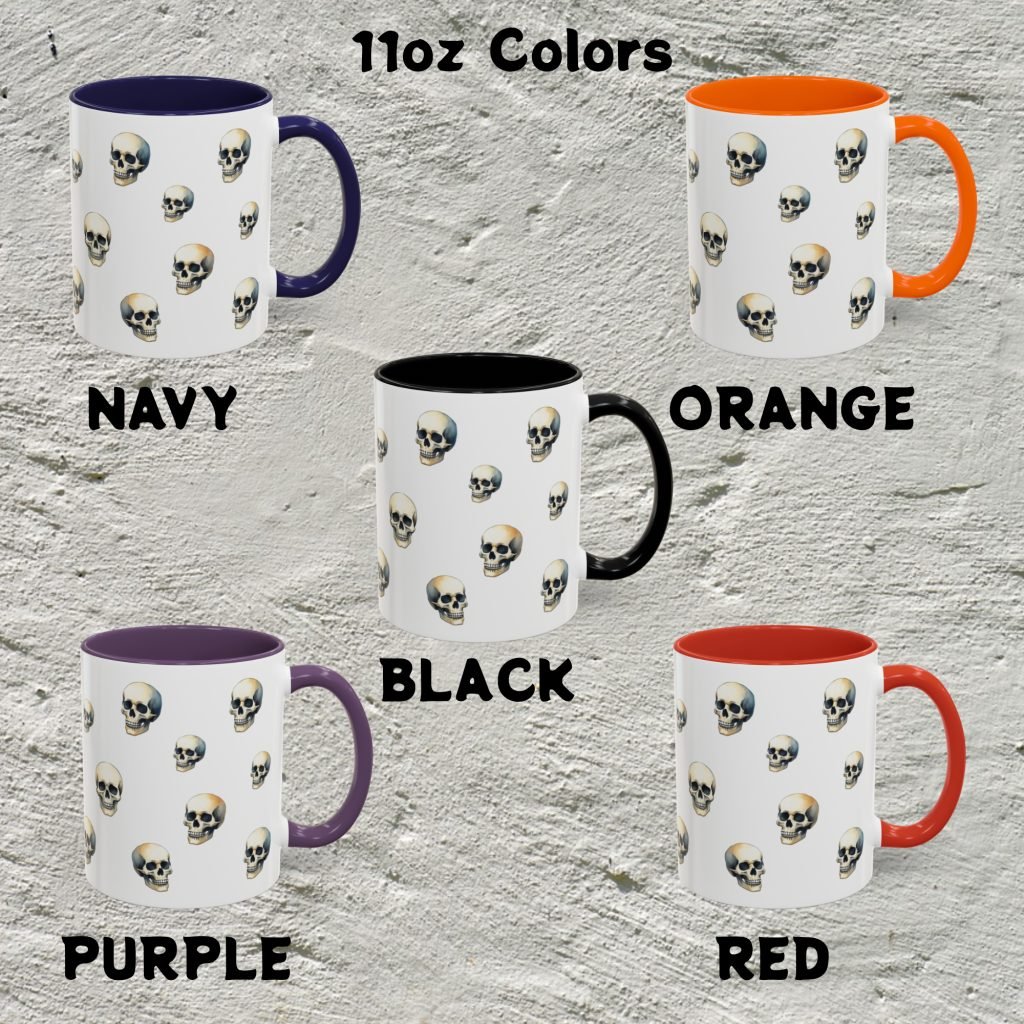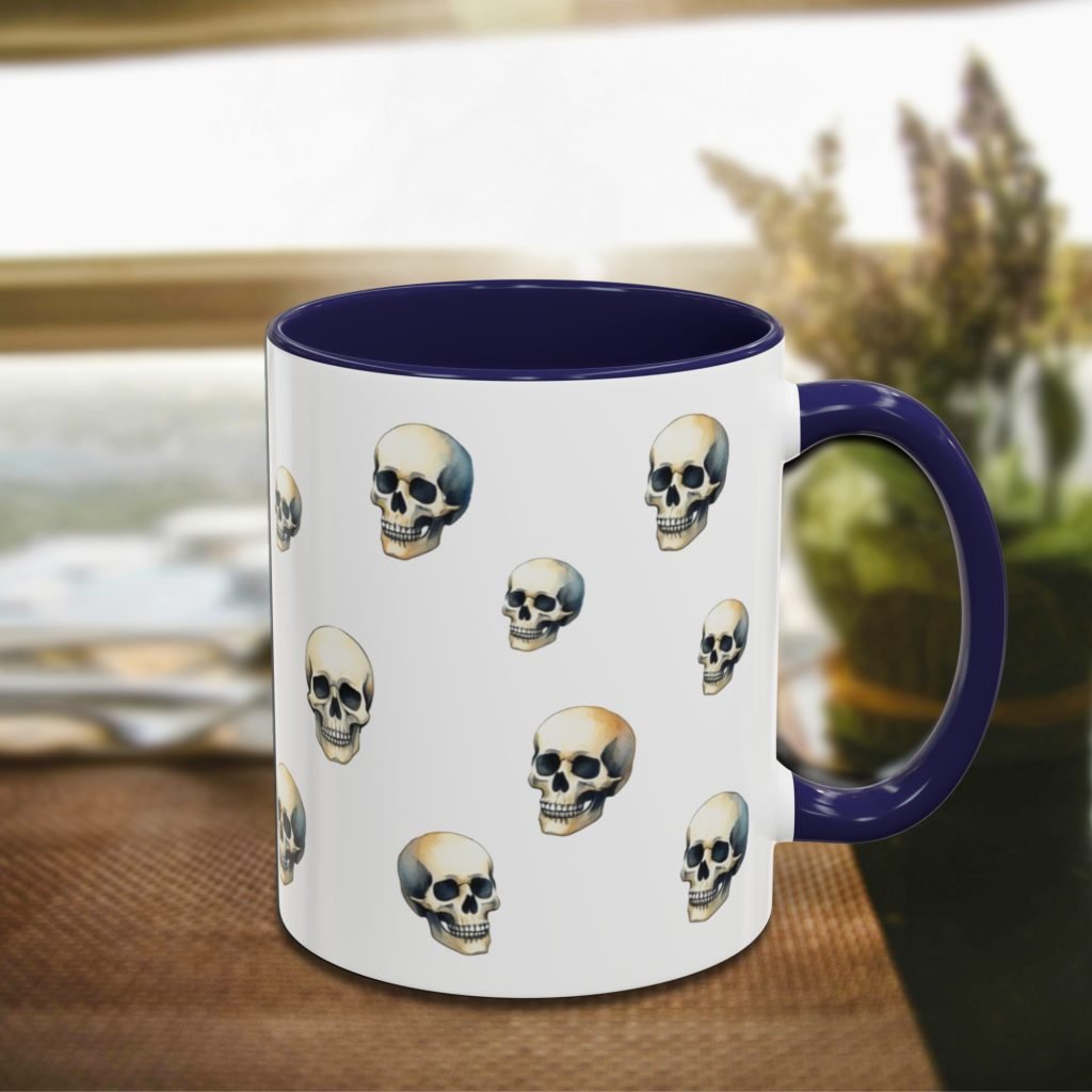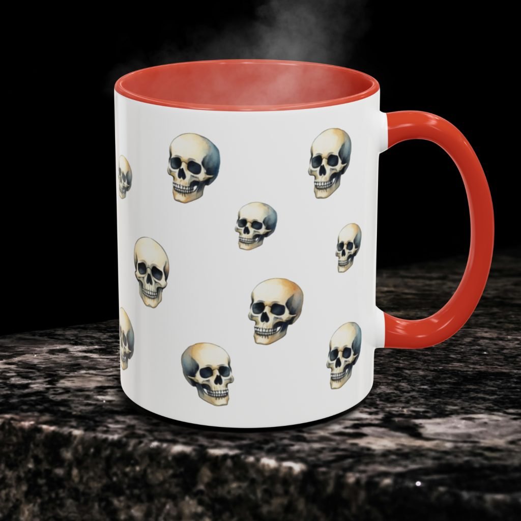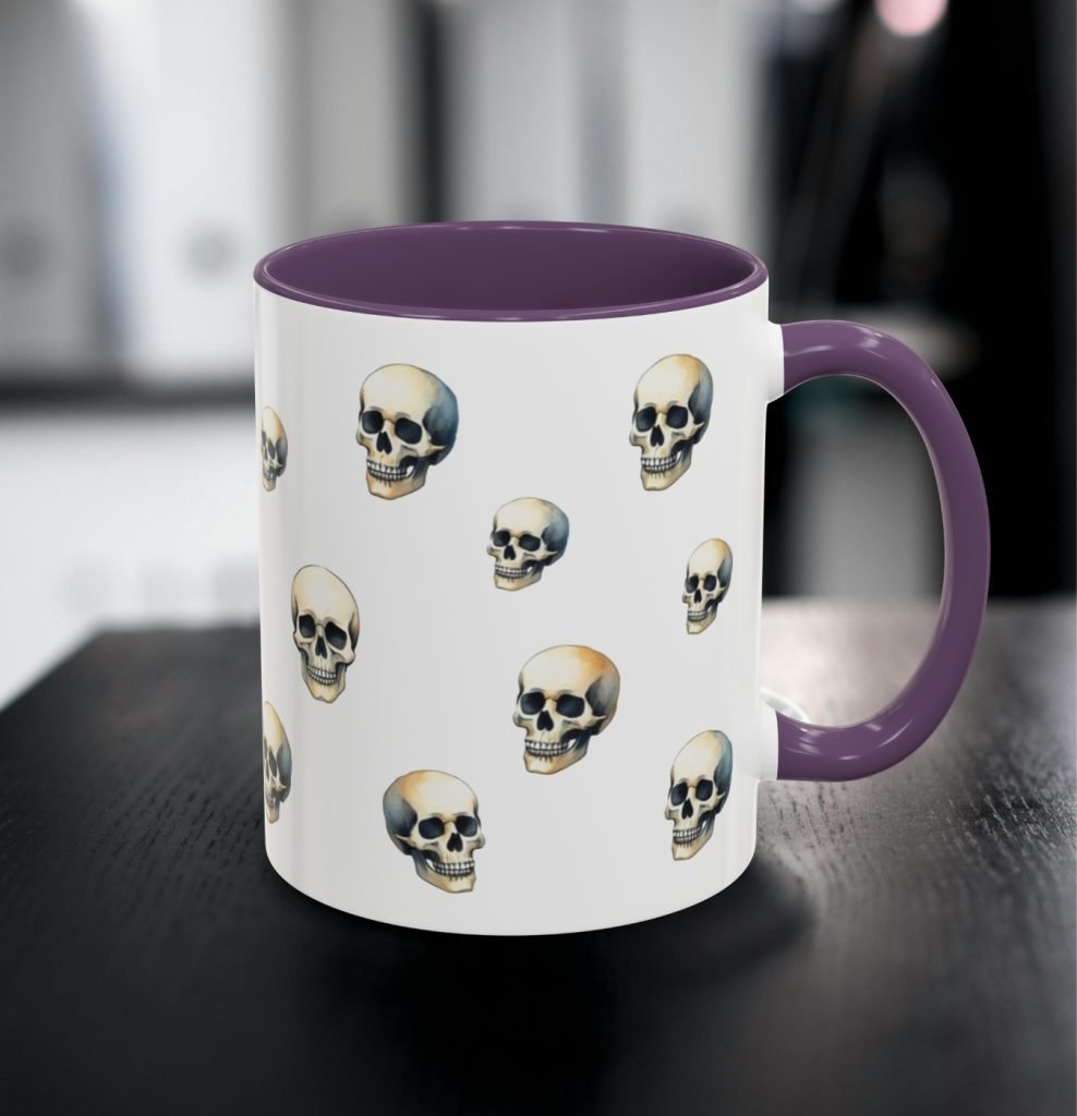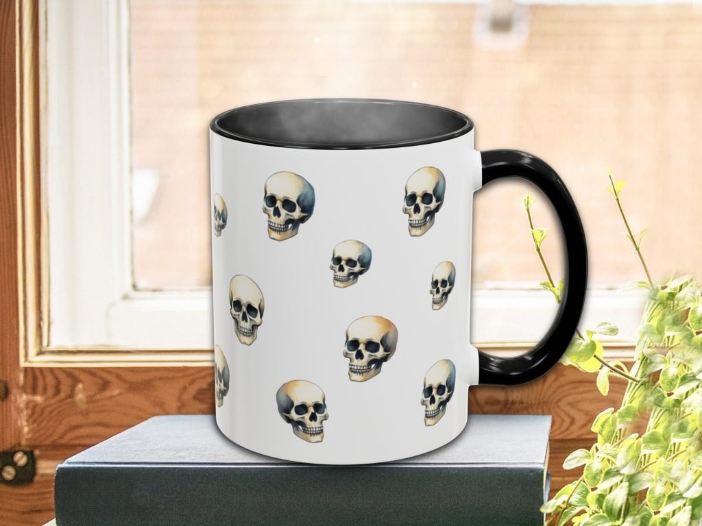This ceramic Gothic Skull Mug features bold skull artwork in a gothic style—ideal for horror lovers and goth gift giving. Comes as 11oz or 15oz. Microwave and dishwasher safe for everyday use.