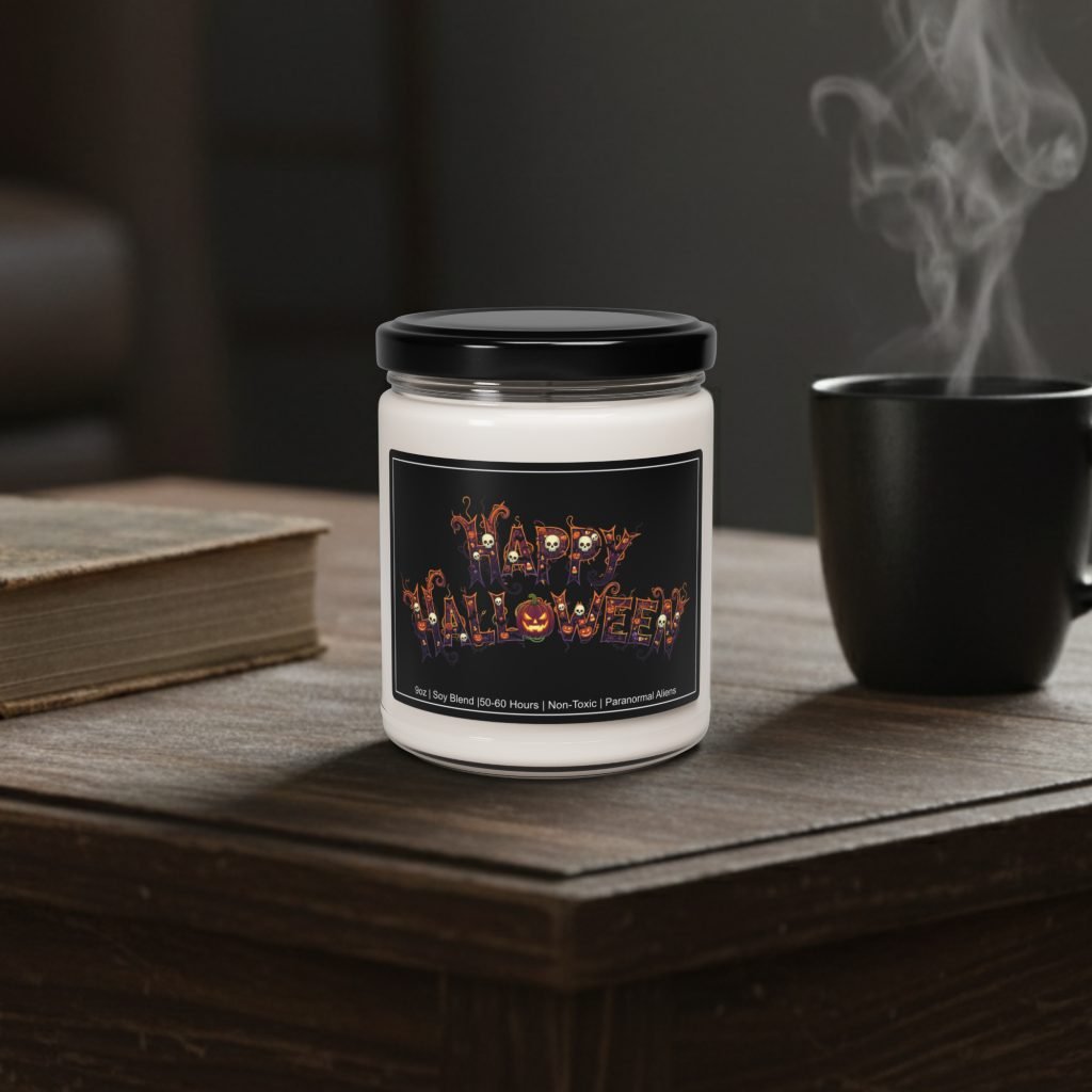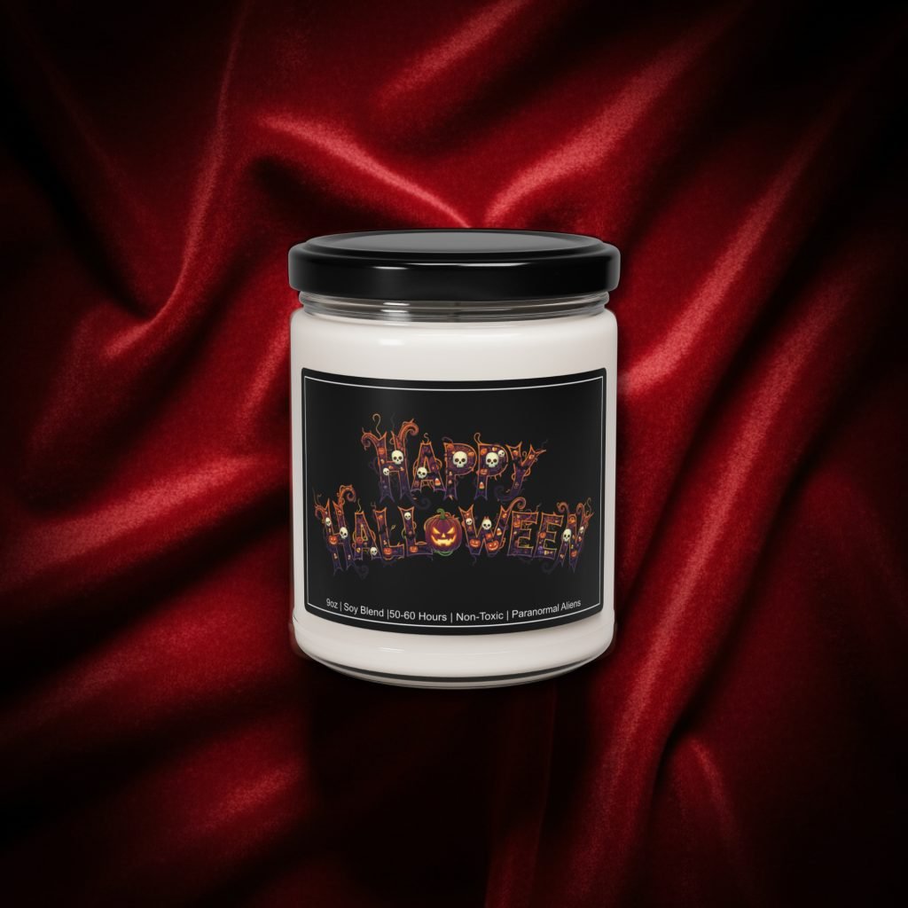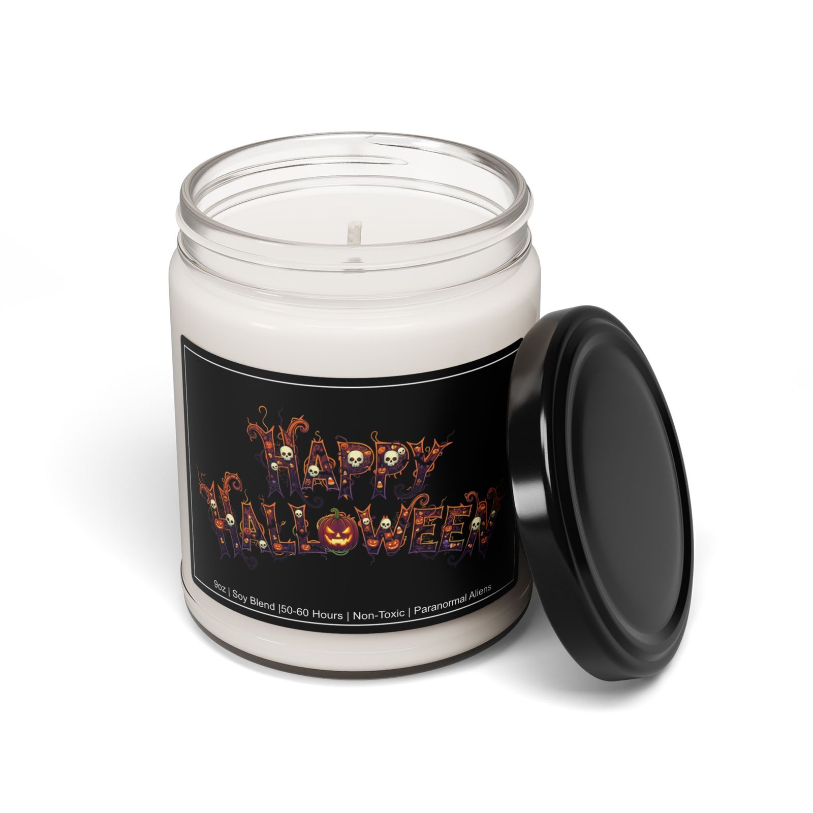 Celebrate Halloween with this festive Happy Halloween Candle featuring spooky text and art. Made with a natural soy wax blend and cotton wick, it comes in a reusable 9oz jar with 10 scent options—ideal for gifting or seasonal decor.
