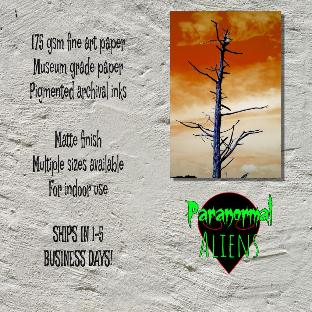 Transform your space with the Hellish Fiery Winter Sky Horror Wall Art, where a hauntingly beautiful scene unfolds. Featuring a scrawny dead tree silhouetted against a hellish sky filled with fiery orange clouds, this striking piece captures the essence of a spooky landscape that will leave a lasting impression. Surprise your friend or loved one by presenting them this stunning gothic wall art as the perfect horror gift for their birthday or Christmas. Elevate your wall decor with the Hellish Fiery Winter Sky Horror Wall Art. This dark art print not only enhances your home with its eerie beauty but also reflects your unique style. Whether you’re curating a collection of creepy posters, seeking Halloween art prints, giving as a wonderful horror goth gift or simply love the macabre, this piece is a must-have. Make a statement with art that resonates with the darker side of life!