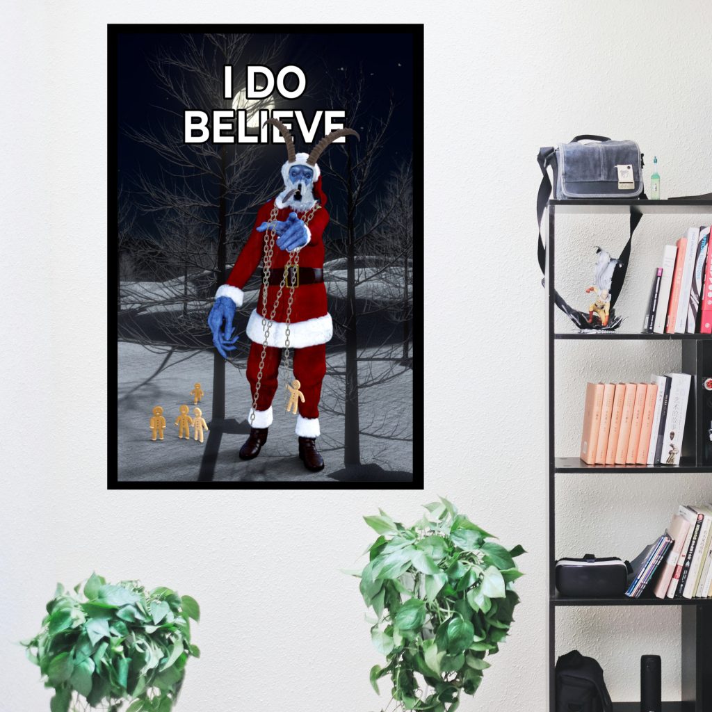 Ignite the enchanting belief in Krampus with our “I Do Believe” Krampus Poster Print, a captivating piece of horror decor that brings the dark side of Christmas to life.
