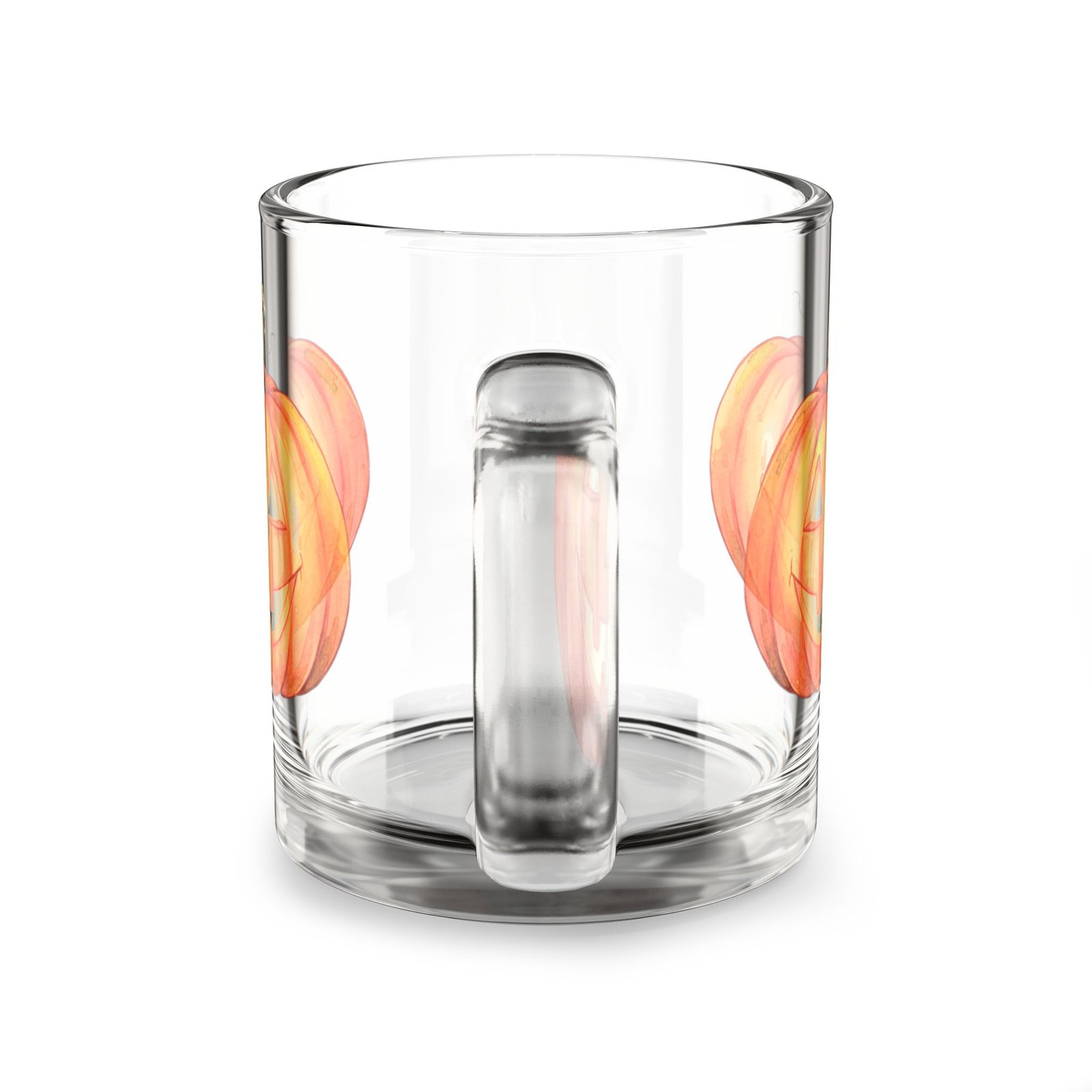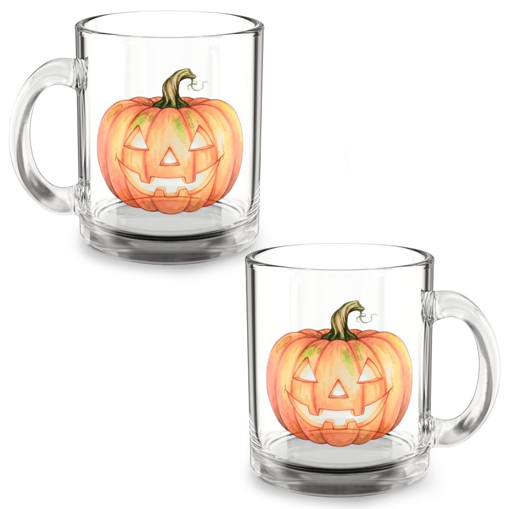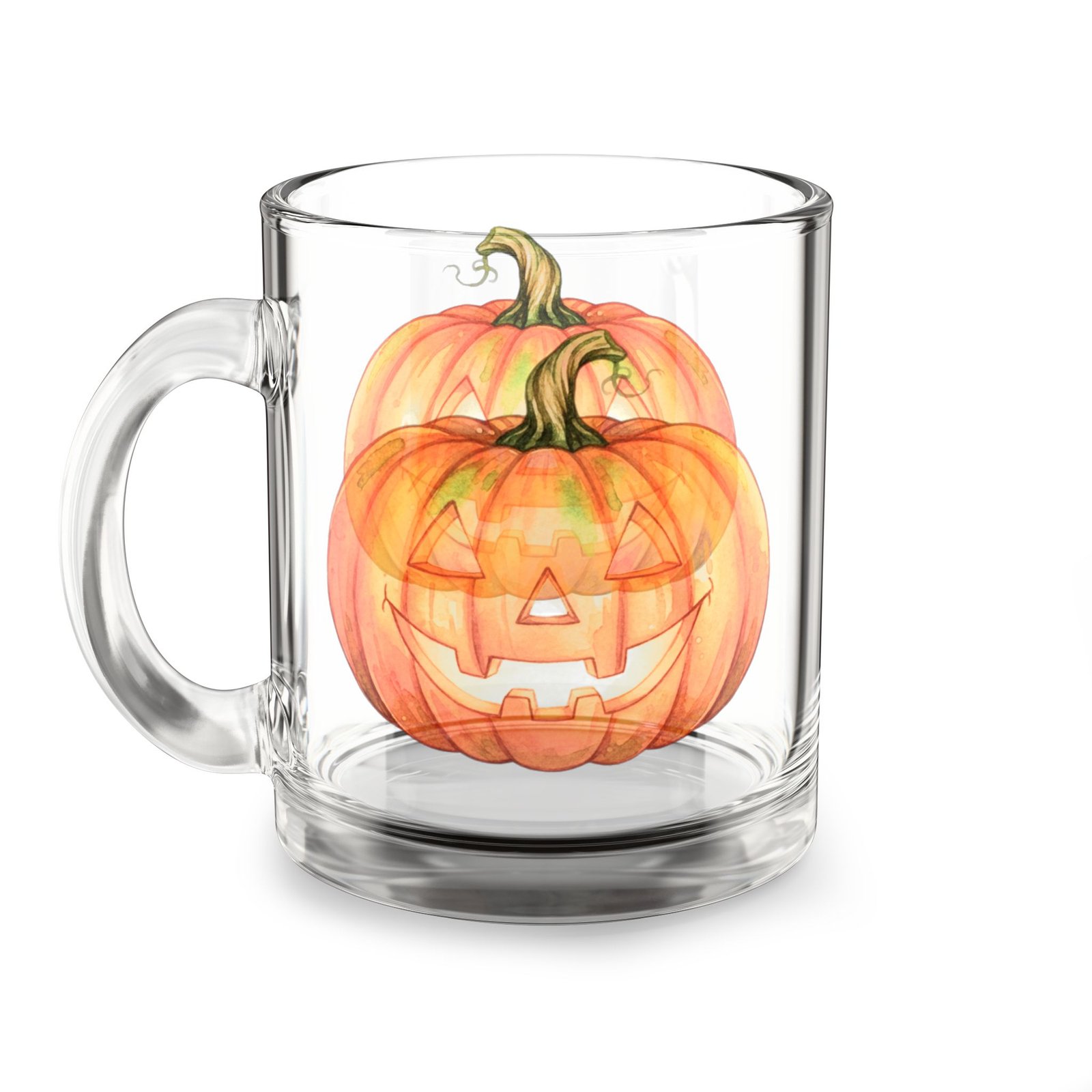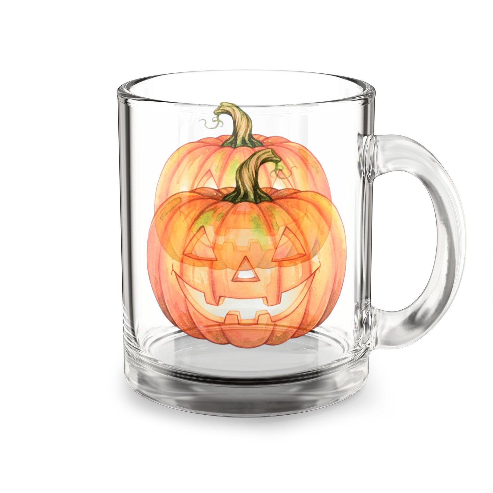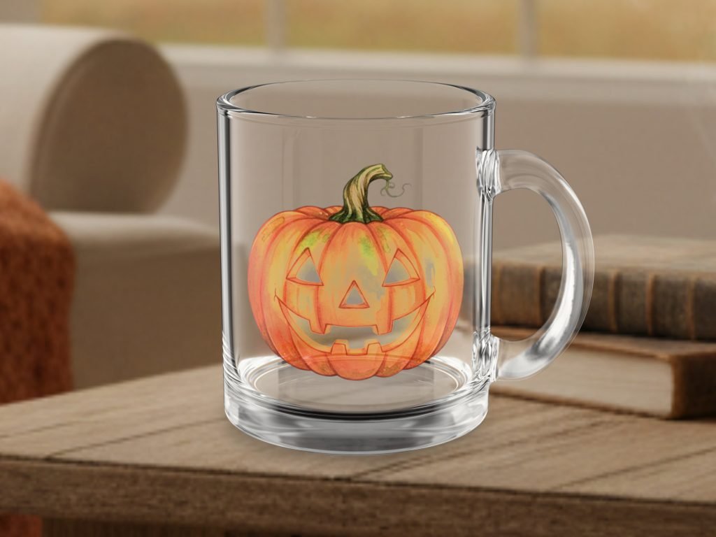 This 10 oz clear Jack O Lantern glass mug features jack o lantern artwork and a sturdy c-shaped handle. Durable and heat-resistant, it’s ideal for Halloween gifting and cozy fall drinks.