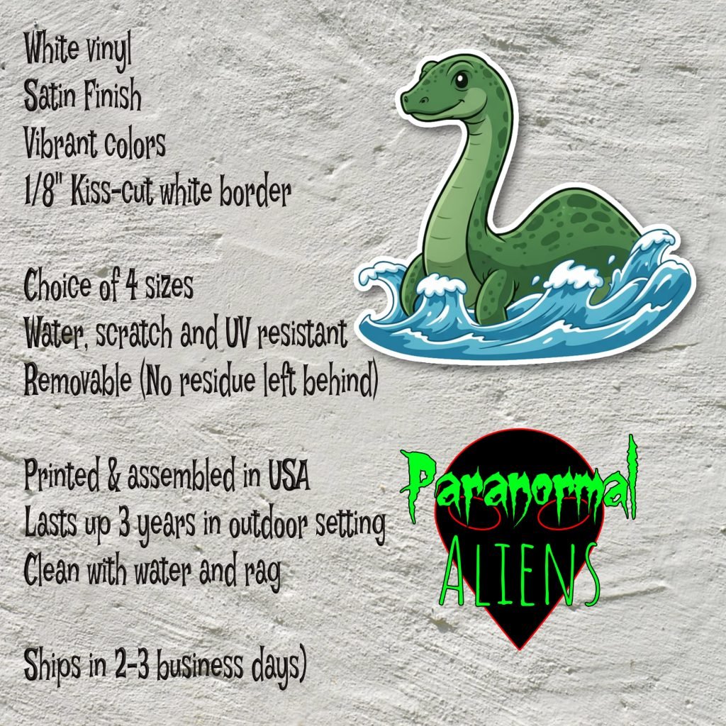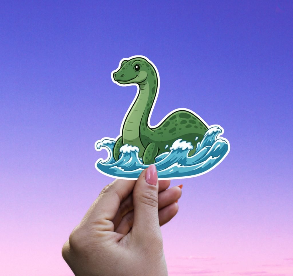 This Loch Ness Monster Sticker features vibrant colors, satin finish, and kiss-cut edges with white borders. Waterproof vinyl makes it ideal for laptops, phones, tablets, and journals. A fun gift for cryptid fans.