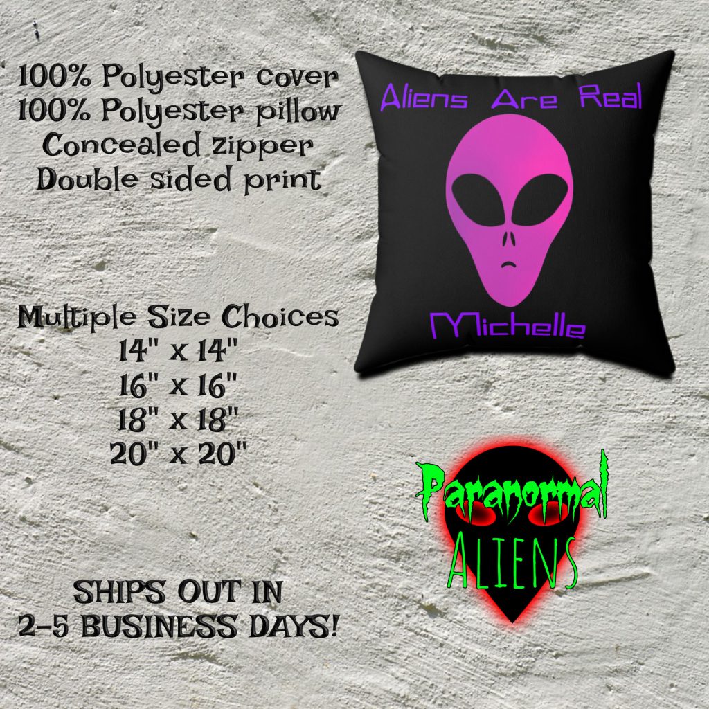 Introducing our Pink Alien personalized name pillow, a captivating addition to your goth decor. This distinctive pillow features a bold pink alien head on a sleek black fabric, creating a striking contrast that is sure to catch the eye. With its unique throw pillow design, it stands out from the crowd and adds a touch of individuality to any space. Custom personalized name throw pillow lets you add any name, be it yours, a last name or for gift giving for a truly special one of a kind gift. Whether you’re searching for a unique throw pillow for yourself or seeking a special gift for her, this pillow is the perfect choice. Embrace the mysterious allure of space aliens and elevate your decor with a hint of horror. Our Pink Alien Unique Throw Pillow is an ideal blend of style and intrigue, making it a must-have for any goth enthusiast. Enhance your space with this one-of-a-kind custom Personalized Name Pillow and let your imagination wander among the stars.