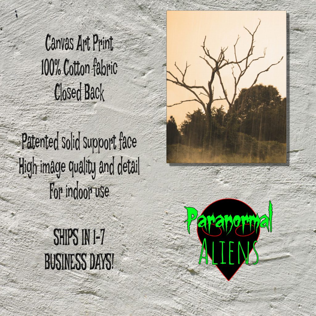 Sepia Creepy Dead Tree Canvas Wall Art, Goth Decor Gift, Rain Storm Creepy Landscape, Tree Art Canvas Print