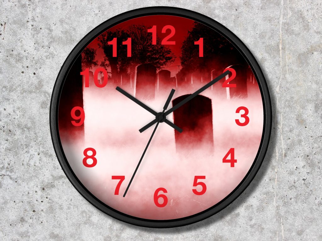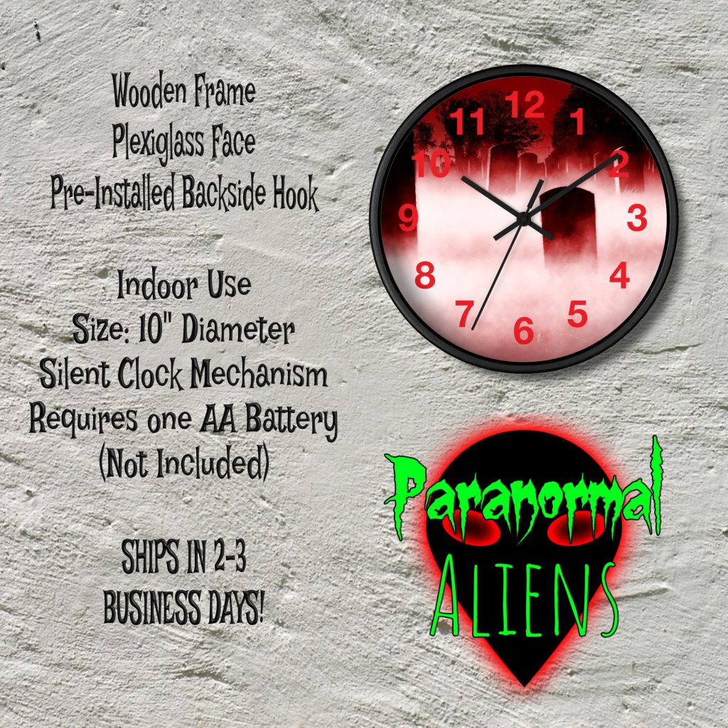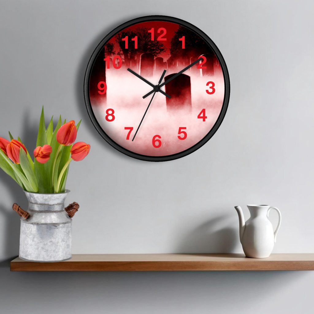 Introducing our Scary Graveyard Scene Unique Wall Clock, an extraordinary piece of Gothic Wall Art that will enthrall every horror lover. Step into a world shrouded in mystery as thick fog rises from the ground of a creepy graveyard, while an eerie red glow casts its enchanting spell. This meticulously crafted Goth Clock is the perfect Halloween decoration, infusing your space with an aura of dark allure. Every glance at its haunting design will transport you to a realm where the macabre meets beauty. It’s not just a timepiece; it’s a captivating work of art that adds a touch of eerie elegance to any room. Whether you’re seeking a striking gift for her or a unique addition to your own Gothic collection, this Creepy Graveyard Scene Unique Wall Clock is the ultimate choice. Embrace the darkness and awaken your senses with this mesmerizing masterpiece.