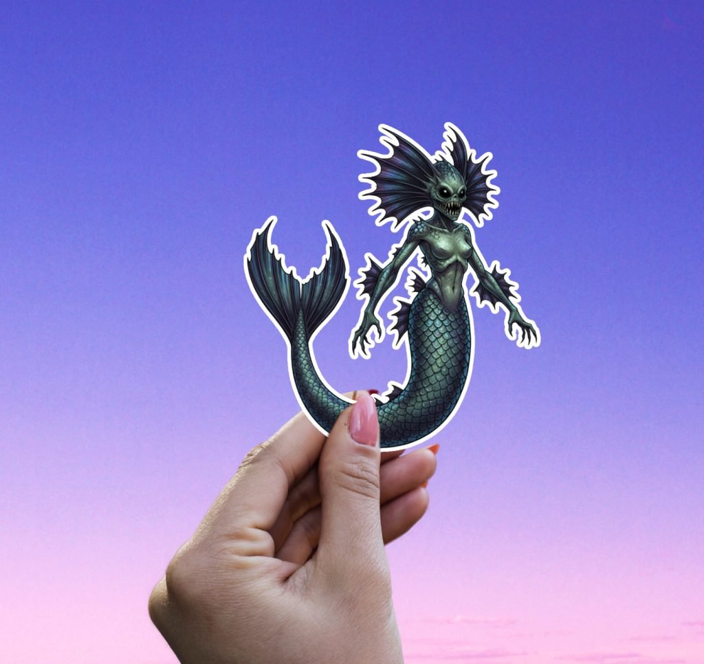 This Vinyl Mermaid Sticker features vibrant colors, a satin finish, and kiss-cut edges with white borders. Waterproof and durable, it’s a fun cryptid-themed decal for laptops, phones, tablets, and journals.
